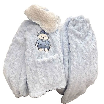 أطقم ملابس نوم نسائية شتوية سميكة بأكمام طويلة بتصميم لطيف